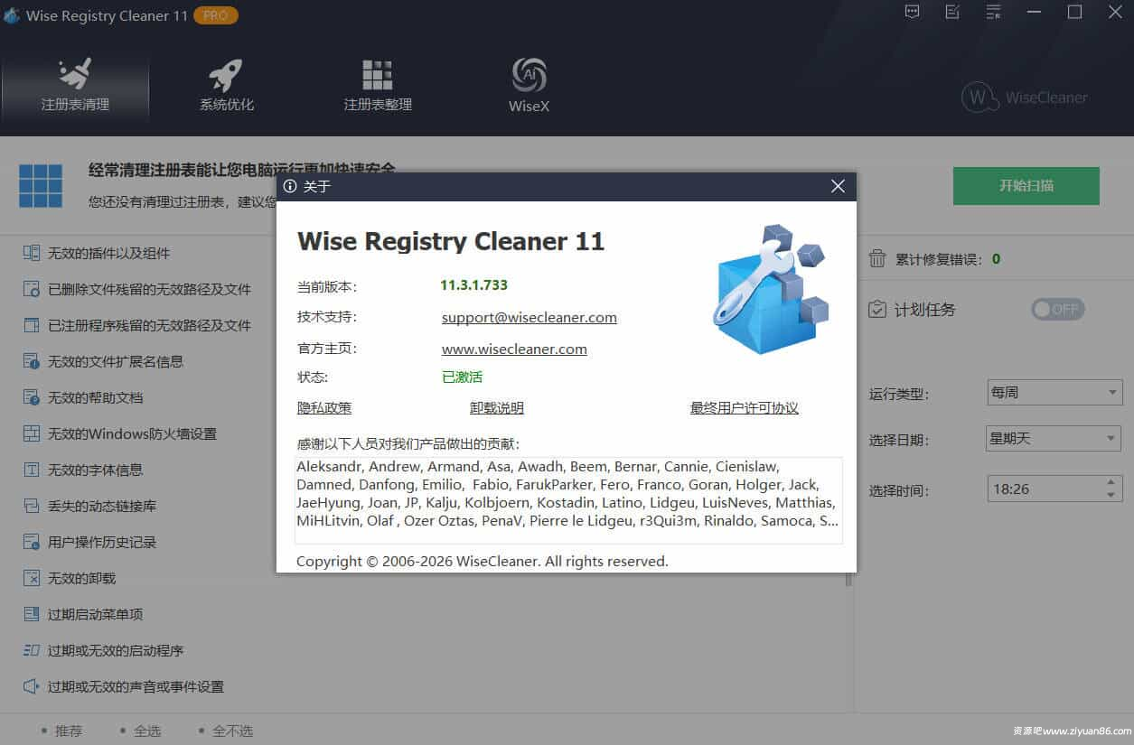 Wise Registry Cleaner – Wise旗下的一款小巧的注册表清理优化工具,具有注册表清理、注册表整理、系统优化功能,能对注册表备份和还原。它可以快速扫描注册表问题,清理无效注册表残留垃圾文件,修复清理过程非常安全,整理注册表后能提升系统性能;系统优化功能,能优化相关系统设置,以提高系统速度。