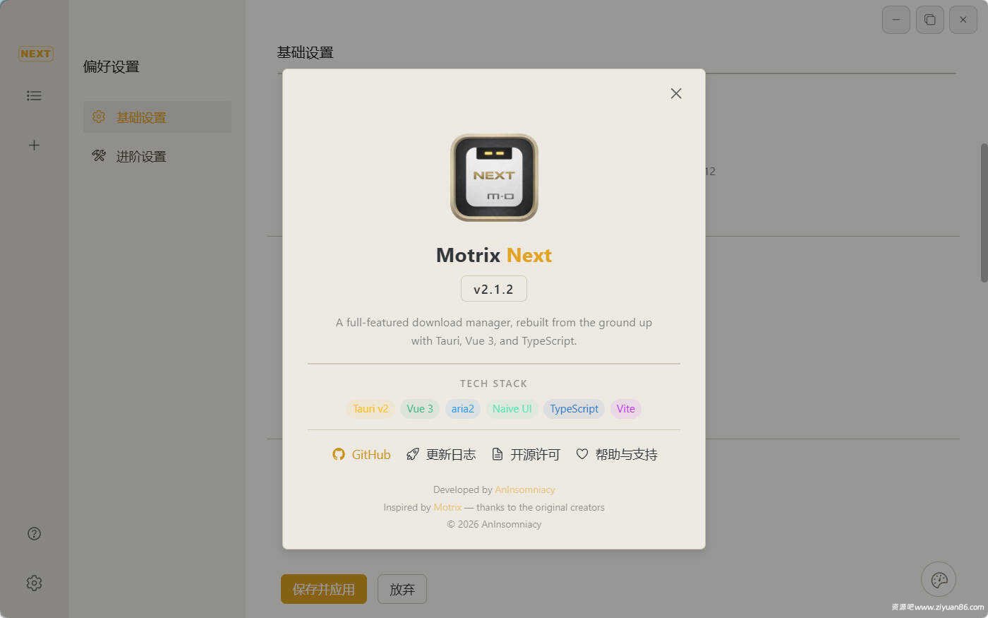 Motrix Next 是基于 agalwood 原版 Motrix 重构的开源多线程下载工具,采用 Tauri 2 与 Vue3 全新打造。原版 Motrix 凭借简洁界面、aria2 驱动和跨平台能力,成为广受赞誉的开源下载管理器之一,启发了无数用户与开发者。然而,原项目自 2023 年起基本停更,且基于 Electron + Vue 2 的技术栈积累了大量技术债务,维护与扩展日益困难。Motrix Next 正是在此背景下应运而生,旨在传承经典的同时,为项目注入新的活力,并保持原汁原味的简洁体验。