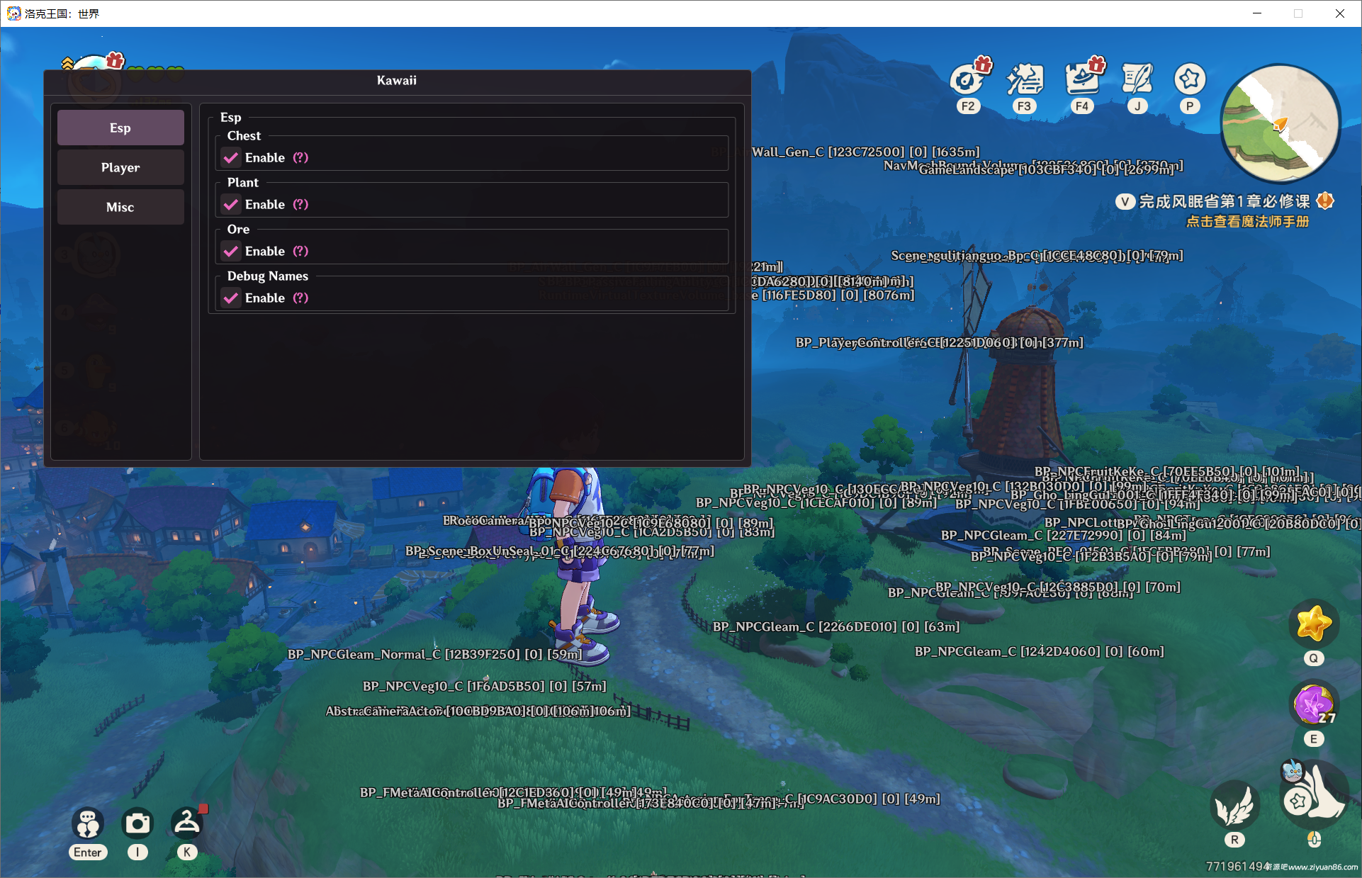 目标传送(Target Teleport) 开启透视勾选对应的物品,就可以按快捷键传送到对应物品的旁边,默认快捷键T,例如勾选chest即为宝箱,然后你就可以传送到宝箱旁边