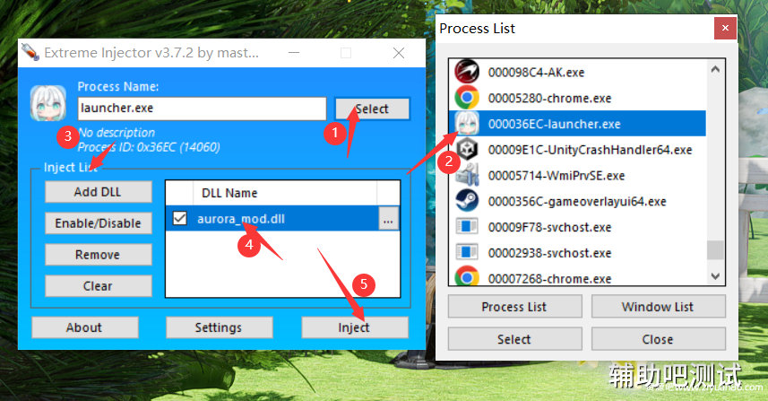 解压文件到桌面以管理员方式运行Extreme Injector v3.exe